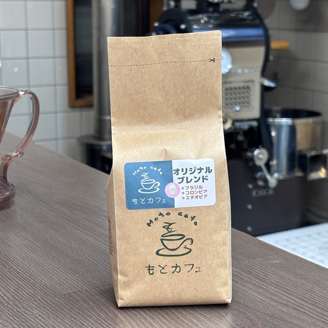 【オリジナルブレンド/中煎り】 軽い飲み心地の、もとカフェ自慢の、ブレンドコーヒーです。 柔らかな酸味とさっぱりとした苦さが魅力です。 生産国 : ブラジル・コロンビア。エチオピア *ご注文の際は、 ①豆か粉をお選びください(金額は同じです) ②豆の量をお選び下さい ※定休日(月)は発送をお休みしております。
